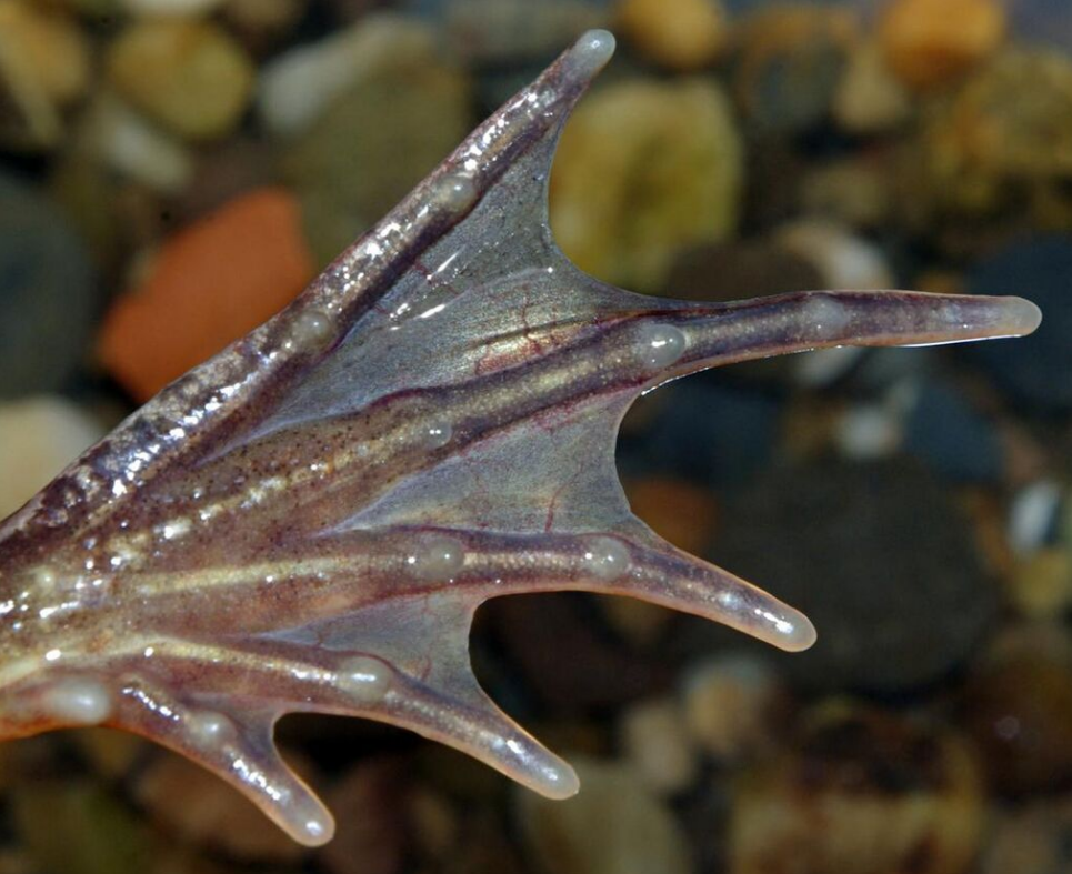Ground-dwelling frogs generally lack the adaptations of aquatic and arboreal frogs. Most have smaller toe pads, if any, and little webbing. Some burrowing frogs such as Couch's spadefoot (Scaphiopus couchii) have a flap-like toe extension on the hind feet, a keratinised tubercle often referred to as a spade, that helps them to burrow.[51]