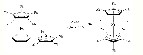 An example of an organometallic isomerization is the production of decaphenylferrocene, [(η5-C5Ph5)2Fe] from its linkage isomer.[20][21]