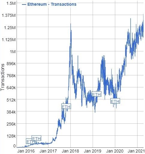 The downside is that performance issues arise because every node calculates all the smart contracts in real-time. (As of January 2016), the Ethereum protocol could process about 25 transactions per second. In comparison, the Visa payment platform processes 45,000 payments per second. This has led some to question the scalability of Ethereum.[91] On 19 December 2016, Ethereum exceeded one million transactions in a single day for the first time.[92] Visa has also signaled interest in processing NFT and Ethereum transactions.[93]