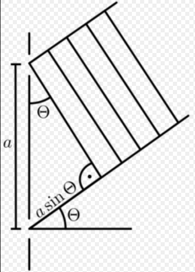 | [math]\displaystyle{ \ {a} \sin \theta = n \lambda }[/math] |