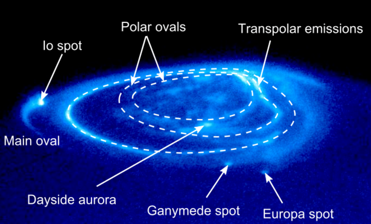 Complex magnetic interactions have been observed in satellite systems. Most notably, the interaction of Jupiter's strong magnetic field with those of Ganymede and Io. Observations suggest that such interactions can cause the stripping of atmospheres from moons and the generation of spectacular auroras.