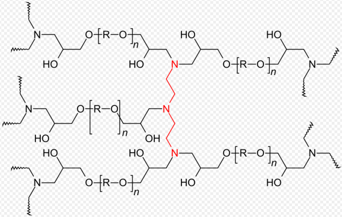 Epoxy resins are typically cured by the use of additives, often called hardeners. Polyamines are often used. The amine groups ring-open the epoxide rings.