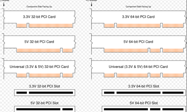 The PCI specification also provides options for 3.3 V signaling, 64-bit bus width, and 66 MHz clocking, but these are not commonly encountered outside of PCI-X support on server motherboards.
