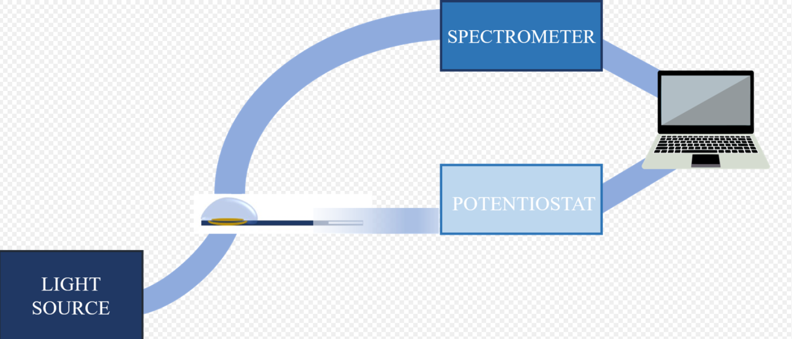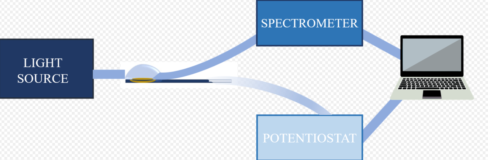 The experimental set-up used to carry out UV-Vis absorption SEC measurements depends on the chosen configuration and the characteristics of the analyte. The experimental set-up is composed of a light source, a spectrometer, a potentiostat/galvanostat, a SEC cell, a three-electrode system, optical elements to conduct the light beam, and a computer for data collection and analysis.[3] Currently, there are commercial devices that integrate all these elements in a single instrument, simplifying significantly the SEC experiments.[5]