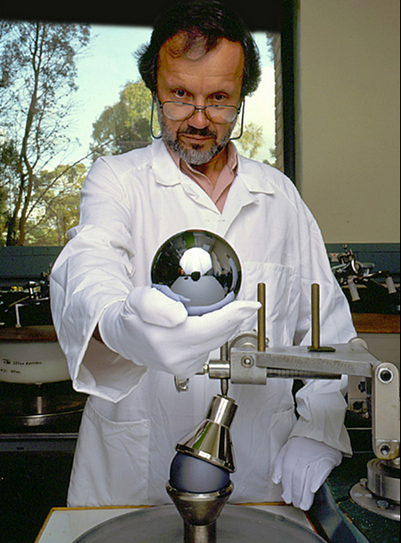 The measurements use highly polished spheres of silicon with a mass of one kilogram. Spheres are used to simplify the measurement of the size (and hence the density) and to minimize the effect of the oxide coating that inevitably forms on the surface. The first measurements used spheres of silicon with natural isotopic composition, and had a relative uncertainty of 3.1×10−7.[39][40][41] These first results were also inconsistent with values of the Planck constant derived from Kibble balance measurements, although the source of the discrepancy is now believed to be known.[38]