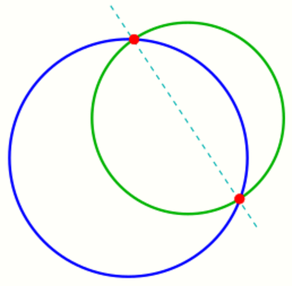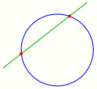 if [math]\displaystyle{ r^2(a^2+b^2)-c^2\ge0 \ . }[/math] If this condition holds with strict inequality, there are two intersection points; in this case the line is called a secant line of the circle, and the line segment connecting the intersection points is called a chord of the circle.