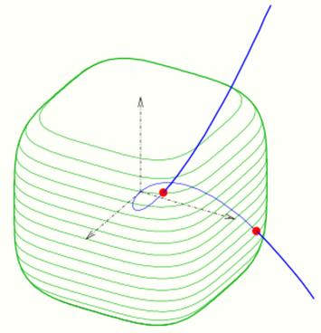 In 3-dimensional space there are intersection points (common points) between curves and surfaces. In the following sections we consider transversal intersection only.