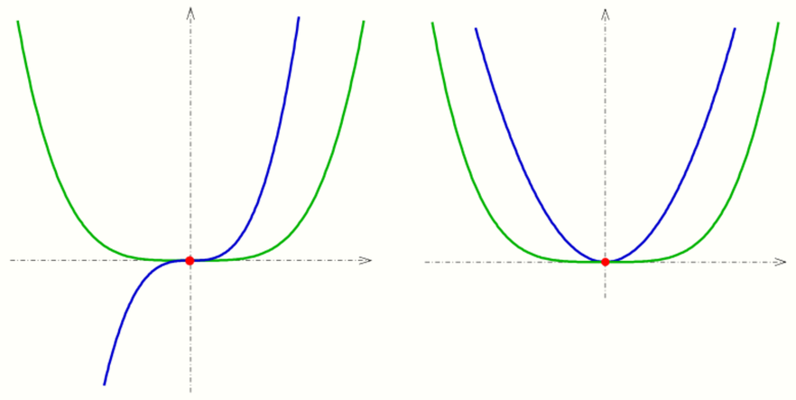 If both the curves have a point S and the tangent line there in common but do not cross each other, they are just touching at point S.