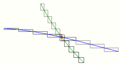 Example: For the line segments [math]\displaystyle{ (1,1),(3,2) }[/math] and [math]\displaystyle{ (1,4),(2,-1) }[/math] one gets the linear system