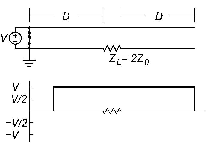 A disadvantage of simple PFN pulse generators is that because the transmission line must be matched to the load resistance RL to prevent reflections, the voltage stored on the line is divided equally between the load resistance and the characteristic impedance of the line, so the voltage pulse applied to the load is only one-half the power supply voltage.[1][2]