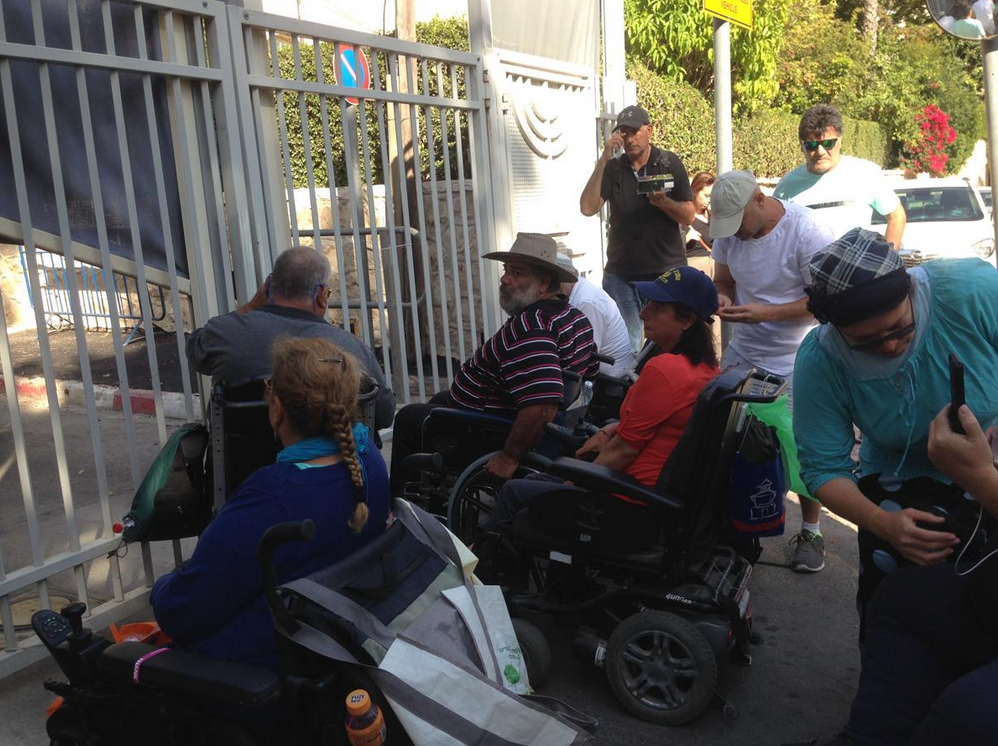 On June 28, 2018, there were four demonstrations of the disabled people at the same time. The demonstrations were in Haifa in front of Kahlon's house, led by Yonathan Tadmor; in Tel Aviv on Ayalon Highway, led by Eyal Cohen; in Jerusalem near to the Prime Minister's house, led by Ofer Sofer, and in Beersheba at the plaza near Beersheba District Court, led by Ravit Ben Baruch.[137][138]