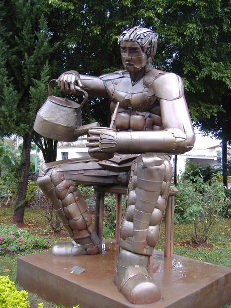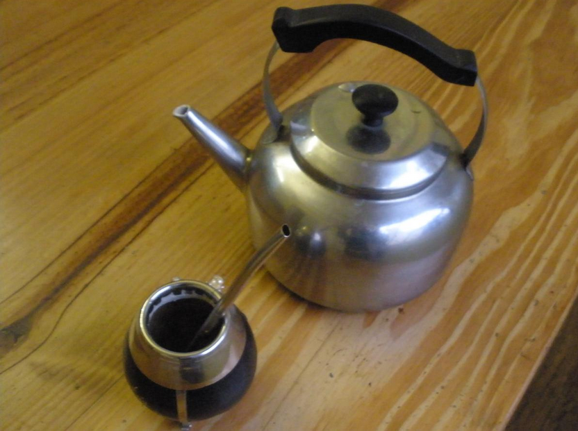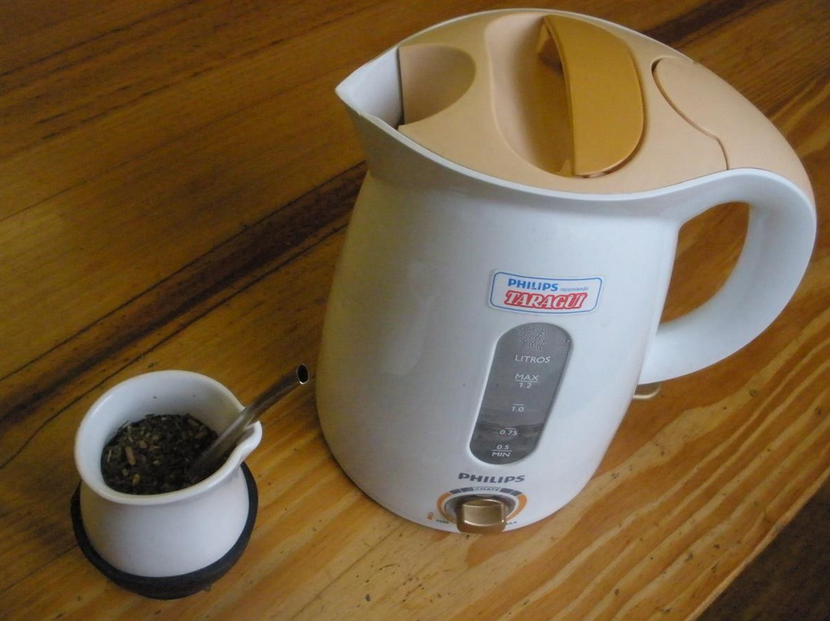 The preparation of maté is a simple process, consisting of filling a container with yerba, pouring hot, but not boiling, water over the leaves, and drinking with a straw, the bombilla, which acts as a filter so as to draw only the liquid and not the yerba leaves. The method of preparing the maté infusion varies considerably from region to region, and which method yields the finest outcome is debated. However, nearly all methods have some common elements. The beverage is traditionally prepared in a gourd recipient, also called mate or guampa in Spanish and cuia in Portuguese, from which it is drunk. The gourd is nearly filled with yerba, and hot water,[14] typically at 70 to 85 °C (158 to 185 °F), never boiling,[15] is added. The drink is so popular within countries that consume it, that several national electric kettle manufacturers just refer to the range 70 to 85 °C on its thermostat as "maté" temperature.