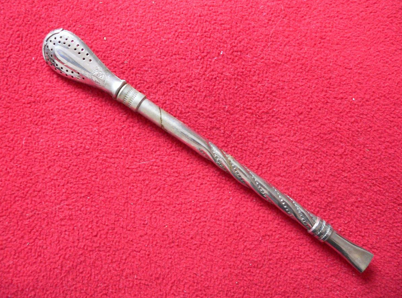 All of this careful settling of the yerba ensures that each sip contains as little particulate matter as possible, creating a smooth-running maté. The finest particles will then be as distant as possible from the filtering end of the straw. With each draw, the smaller particles would inevitably move toward the straw, but the larger particles and stems filter much of this out. A sloped arrangement provides consistent concentration and flavor with each filling of the maté.
