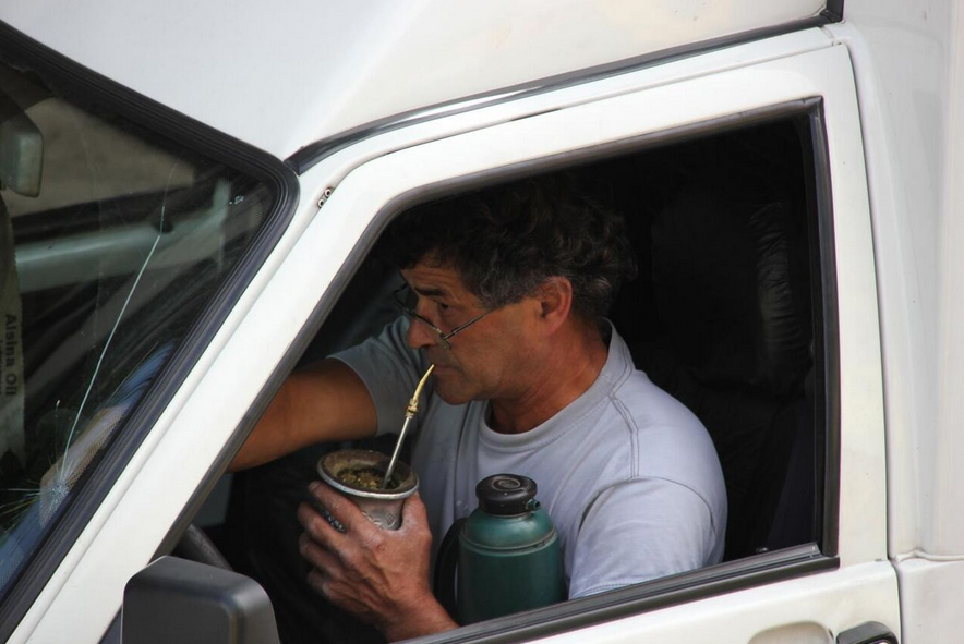 In Uruguay, people commonly walk around the streets toting a maté and a thermos with hot water. In some parts of Argentina, gas stations sponsored by yerba mate producers provide free hot water to travelers, specifically for the purpose of drinking during the journey. Disposable maté sets with a plastic maté and straw and sets with a thermos flask and stacking containers for the yerba and sugar inside a fitted case are available.