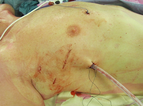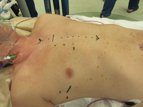 Figure 1. Marking of the incisions for MIMVS and the incision for conversion to sternotomy
