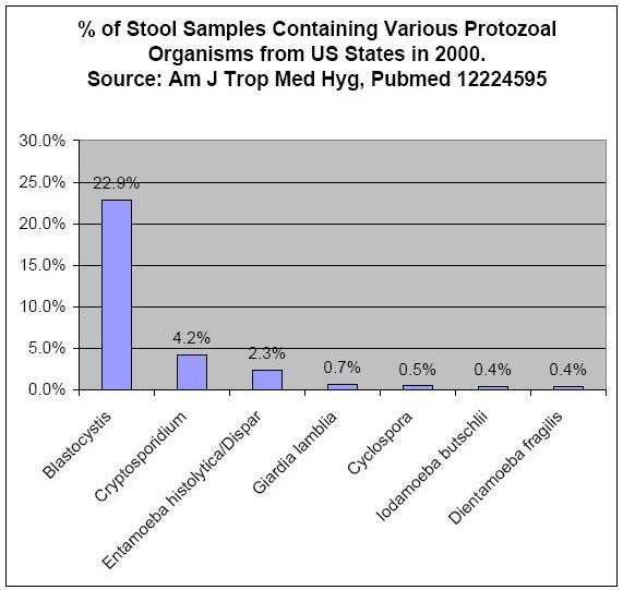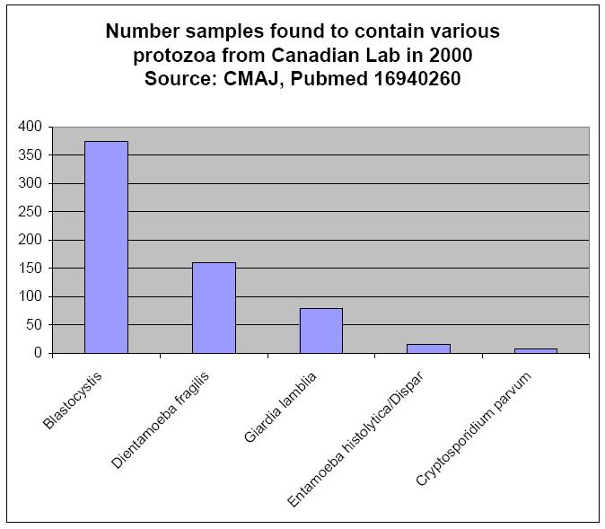 Figure 1 shows the prevalence of gastrointestinal protozoa in studies from the United States and Canada .[43][44] The most prevalent protozoa in these studies are considered emerging infectious diseases by some researchers, because a consensus does not yet exist in the medical and public health spheres concerning their importance in the role of human disease.[46][47] Researchers have suggested that their treatment may be complicated by differing opinions regarding pathogenicity, lack of reliable testing procedures, and lack of reliable treatments.[48] As with newly discovered pathogens before them, researchers are reporting that these organisms may be responsible for illnesses for which no clear cause has been found, such as irritable bowel syndrome.[49][50][51]