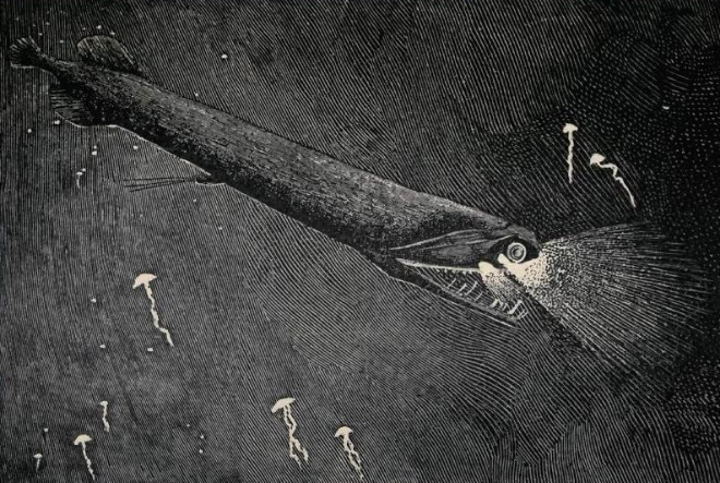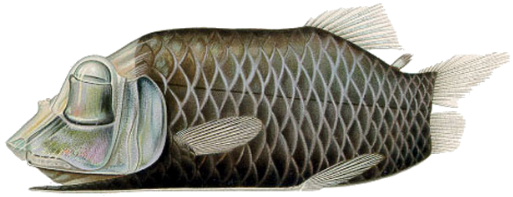 Deepwater fishes, like this Antarctic toothfish, often have large, upward looking eyes, adapted to detect prey silhouetted against the gloom above.[34] https://handwiki.org/wiki/index.php?curid=1727385