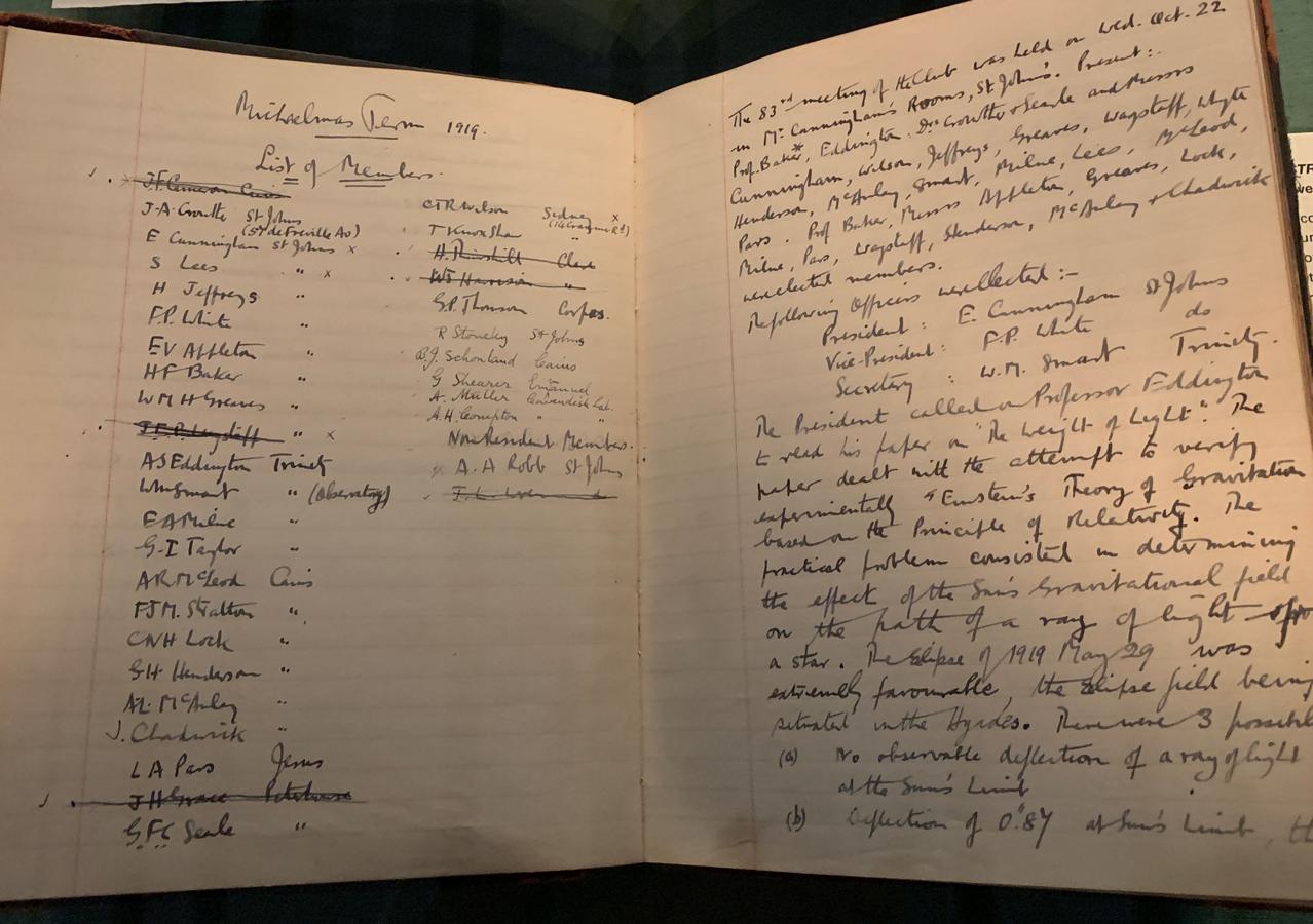 Throughout this period, Eddington lectured on relativity, and was particularly well known for his ability to explain the concepts in lay terms as well as scientific. He collected many of these into the Mathematical Theory of Relativity in 1923, which Albert Einstein suggested was "the finest presentation of the subject in any language." He was an early advocate of Einstein's General Relativity, and an interesting anecdote well illustrates his humour and personal intellectual investment: Ludwik Silberstein, a physicist who thought of himself as an expert on relativity, approached Eddington at the Royal Society's (6 November) 1919 meeting where he had defended Einstein's Relativity with his Brazil-Príncipe Solar Eclipse calculations with some degree of scepticism, and ruefully charged Arthur as one who claimed to be one of three men who actually understood the theory (Silberstein, of course, was including himself and Einstein as the other). When Eddington refrained from replying, he insisted Arthur not be "so shy", whereupon Eddington replied, "Oh, no! I was wondering who the third one might be!"[12]