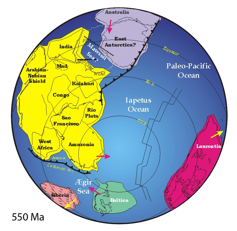 Evidence of the details of plate motions and other tectonic activity in the Precambrian has been poorly preserved. It is generally believed that small proto-continents existed prior to 4280 Ma, and that most of the Earth's landmasses collected into a single supercontinent around 1130 Ma. The supercontinent, known as Rodinia, broke up around 750 Ma. A number of glacial periods have been identified going as far back as the Huronian epoch, roughly 2400–2100 Ma. One of the best studied is the Sturtian-Varangian glaciation, around 850–635 Ma, which may have brought glacial conditions all the way to the equator, resulting in a "Snowball Earth".