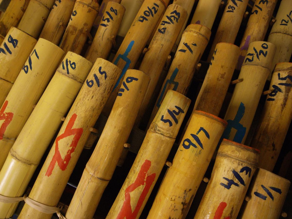 The Boo I was first built in 1955.[7] Some of the bamboo was replaced with larger-diameter pieces in 1963. It has a total of 64 bamboo resonators, organized into six ranks. The back ends of the tubes are sealed.[8]