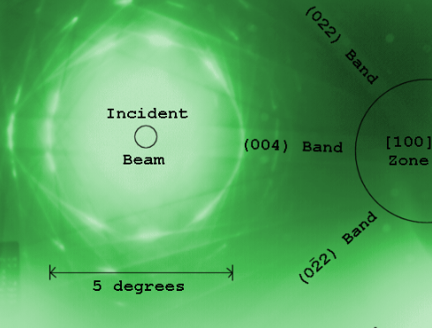 As previously stated, by adjusting the magnetic lenses such that the back focal plane of the lens rather than the imaging plane is placed on the imaging apparatus a diffraction pattern can be generated. For thin crystalline samples, this produces an image that consists of a pattern of dots in the case of a single crystal, or a series of rings in the case of a polycrystalline or amorphous solid material. For the single crystal case the diffraction pattern is dependent upon the orientation of the specimen and the structure of the sample illuminated by the electron beam. This image provides the investigator with information about the space group symmetries in the crystal and the crystal's orientation to the beam path. This is typically done without using any information but the position at which the diffraction spots appear and the observed image symmetries.