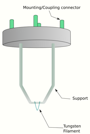 This equation shows that in order to achieve sufficient current density it is necessary to heat the emitter, taking care not to cause damage by application of excessive heat. For this reason materials with either a high melting point, such as tungsten, or those with a low work function (LaB6) are required for the gun filament.[38] Furthermore, both lanthanum hexaboride and tungsten thermionic sources must be heated in order to achieve thermionic emission, this can be achieved by the use of a small resistive strip. To prevent thermal shock, there is often a delay enforced in the application of current to the tip, to prevent thermal gradients from damaging the filament, the delay is usually a few seconds for LaB6, and significantly lower for tungsten.