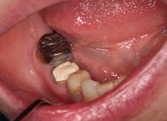 During the follow-up at our hospital, a one-month postoperative panoramic radiography showed no problems. Then, a family dentist performed subsequent prosthetic treatment and follow-up. More than four years have passed since the tooth extraction, and there have been no visits to our clinic due to postoperative problems.