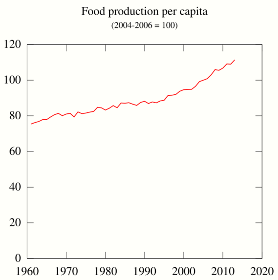 David Pimentel, professor of ecology and agriculture at Cornell University, and Mario Giampietro, senior researcher at the National Research Institute on Food and Nutrition (NRIFN), suggested in 1994 that the maximum U.S. population for a sustainable economy is 210 million. The study says that to achieve a sustainable economy and avert disaster, the United States must reduce its population by at least one-third, and world population will have to be reduced by two-thirds.[106] The authors of the study believe that the mentioned agricultural crisis will only begin to affect us after 2020, and will not become critical until 2050. However, the US population in 2020 is already 330 million, with minimal food insecurity, calling their predictions into question.