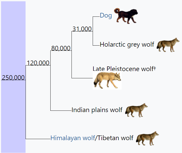 Phylogenetic tree with timing in years for Canis lupus[3]