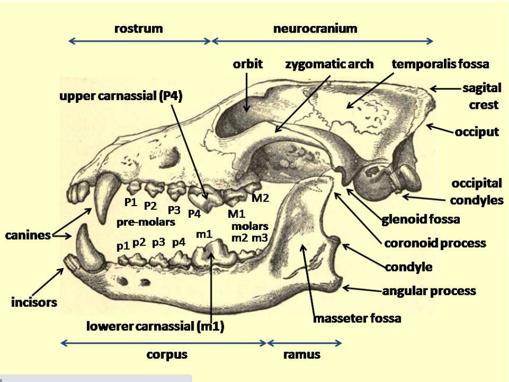In 2014, a study of the morphology of wolf (Canis lupus) remains from Europe dating from the Middle-Late Pleistocene and Holocene indicated that the size of the lower carnassial teeth did not fluctuate directly with changes in climate but possibly with the spread of cold megafauna, and therefore in the dietary regime. The lower carnassial length can be used to estimate carnivore body size.[16]