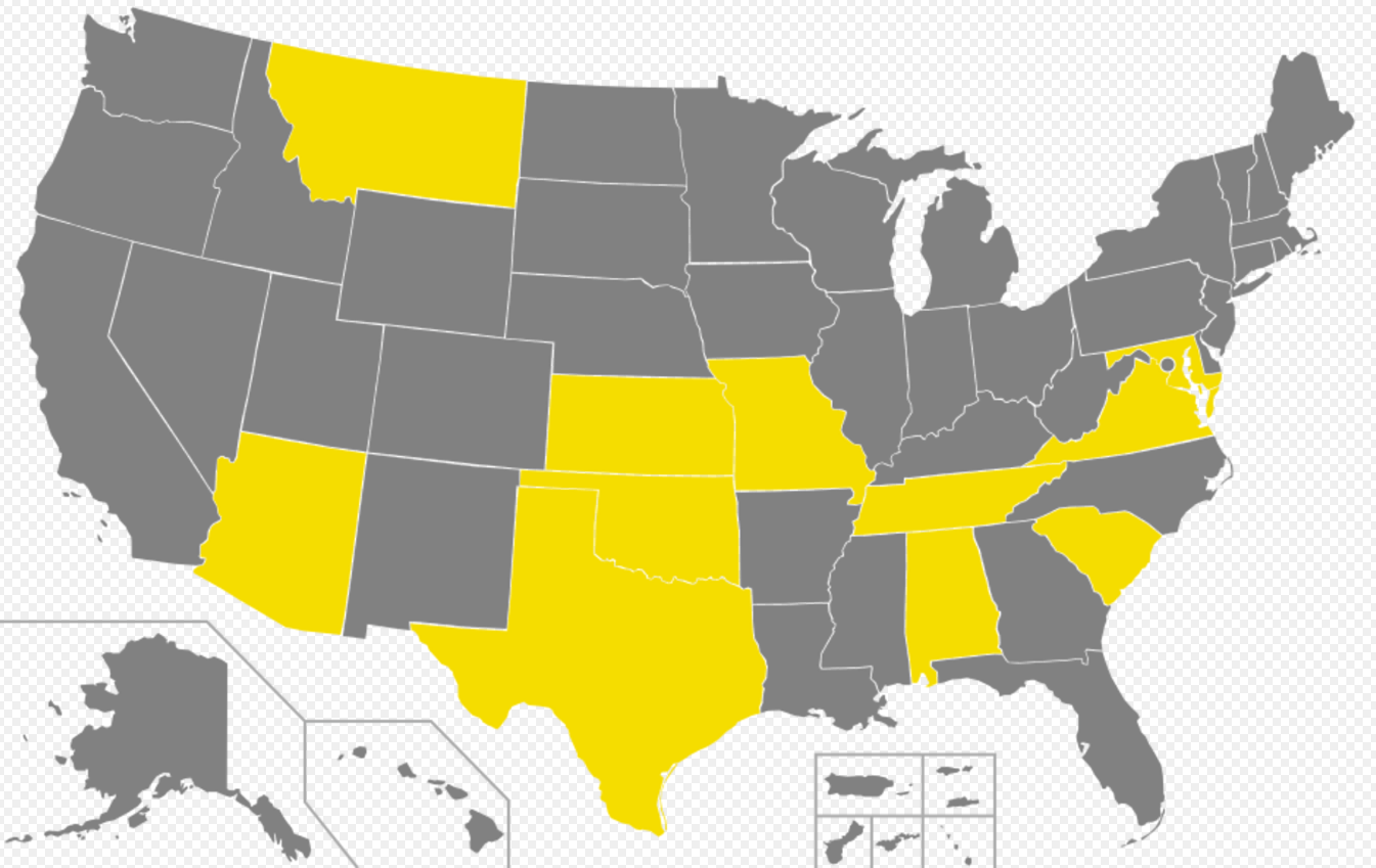 The Gadsden flag has become a popular specialty license plate in several states. (As of 2018), the following states offer the option of obtaining a Gadsden flag specialty license plate: Alabama, Arizona, Maryland,[6] Missouri, Montana,[7] Oklahoma, South Carolina, Tennessee ,[8] Texas , and Virginia.[9][10]