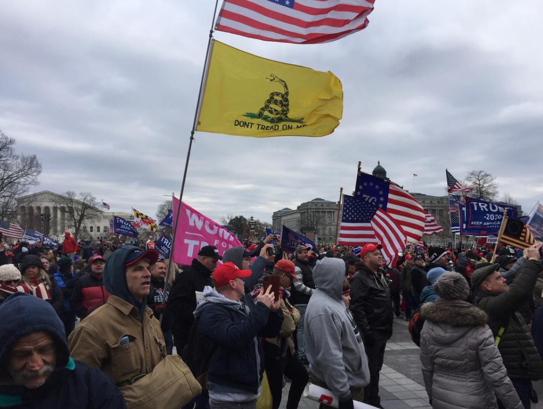 The Gadsden flag was featured prominently in a report related to the January 6, 2021 storming of the United States Capitol. Thirty-four-year-old Rosanne Boyland was carrying one when she collapsed and died in the Capitol rotunda after having lost consciousness in the crush of rioters outside.[22][23][24][25][26]