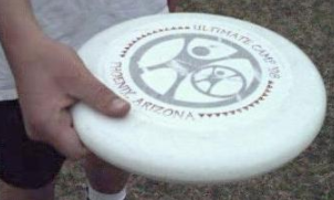 Grip: The fingers of the hand are spread out over the top, with the thumb under the disc and perpendicular to the rim. For greater control, extend the index finger along the rim, as in the control grip for the forehand.