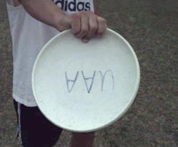 Also known as a bear claw, a duder, a biscuit, a bow tie, or a useless. It is thrown with a similar grip to the Overhand, except it is the backward version of it. While the Overhand is thrown with counter-clockwise spin (for right-handers), the duck is thrown with clockwise spin. It is usually thrown with the arm out to the side or above the head. It is called the duck due to the shape of the gripping hand during the throw, as if making a duck shadow puppet. This throw is used in attempts at The Greatest (jumping out of bounds and throwing the disc back into play while in the air).