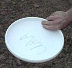 A disc thrown upside-down has a very different flight path than one thrown right-side up. The lift force does not enforce stable flight as it does on a right-side up disc, resulting in a more of a parabolic arc in flight. As with a right-side up throw, however, the flight path of the disc will curve toward the lower edge. This banking effect is most pronounced when the disc is at a 45-degree angle, and less pronounced when it is near-vertical, or near-horizontal.