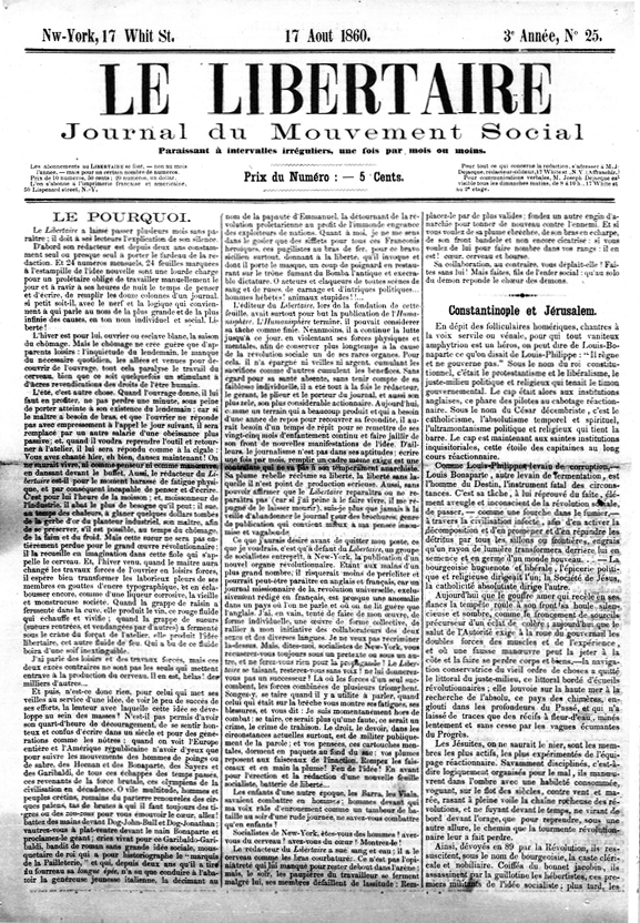 In a scathing letter written in 1857, French anarchist Joseph Déjacque castigated Proudhon for his sexist economic and political views.[35][36][37] He argued that "it is not the product of his or her labour that the worker has a right to, but to the satisfaction of his or her needs, whatever may be their nature".[38] Déjacque later named his anarchist publication The Libertarian: Journal of the Social Movement, which was printed from 9 June 1858 to 4 February 1861. In the mid-1890s, Sébastien Faure began publishing a new Le Libertaire while France's Third Republic enacted the "villainous laws" (lois scélérates), which banned anarchist publications in France. Libertarianism has frequently been used as a synonym for anarchism since this time, especially in continental Europe.[39][40][41]