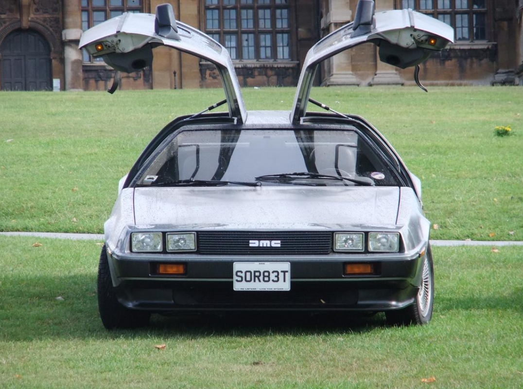 The DMC-12 features a number of unusual construction details, including gull-wing doors, unpainted stainless-steel body panels, and a rear-mounted engine.