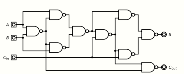 A full adder can be implemented using nine NAND gates.[3]