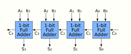 It is possible to create a logical circuit using multiple full adders to add N-bit numbers. Each full adder inputs a Cin, which is the Cout of the previous adder. This kind of adder is called a ripple-carry adder (RCA), since each carry bit "ripples" to the next full adder. Note that the first (and only the first) full adder may be replaced by a half adder (under the assumption that Cin = 0). The output of previous adder (Cout n-1)passed as input to next adder (Cin) .