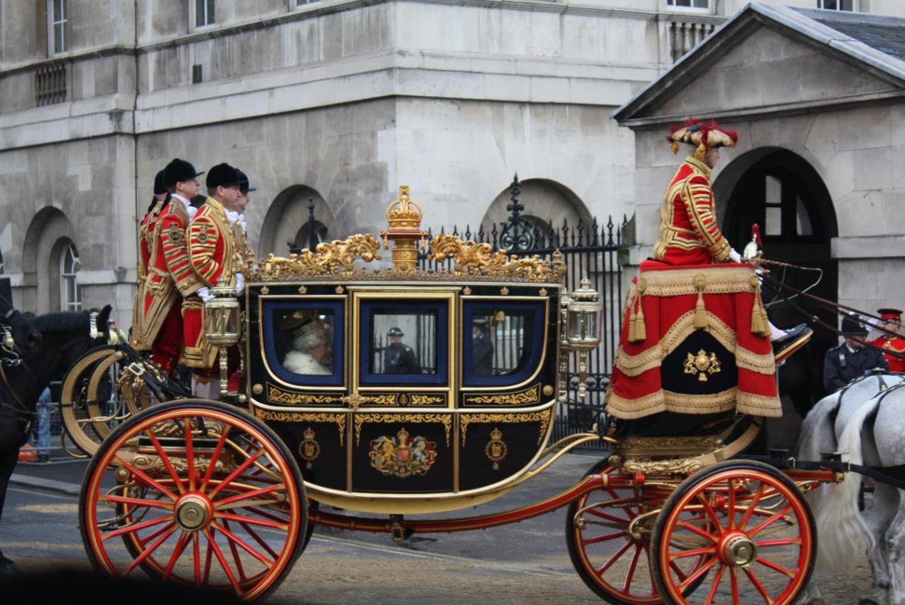 Coachman and footmen in state livery for the State Opening of Parliament. https://handwiki.org/wiki/index.php?curid=1519722