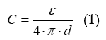 Experimental values of this electrochemical double layer capacity (the technically correct term seems to be capacitance, but electrochemists seem to prefer the former one or use both as synonyms) reported in μF·cm-2 (more precisely of true or of geometric or of electrochemically active surface area (see [1]) are influenced by several parameters and factors like identity of the electronically conducting material (metal or else), its crystallography, on the composition of the electrolyte solution, the concentration of the electrolyte etc. [18][19]. A commonly quoted value is 20 μF·cm-2 for a perfectly flat surface of a metal in contact with a moderately concentrated aqueous electrolyte solution. This comes very close to a value calculated in eq. 1 with the Helmholtz-model for a parallel-plate condenser with