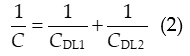Practical double layer capacity numbers exploded into technologically relevant values with the reports and following patents of Becker [27] and Rightmire [28] (more details of the technological developments are found in [29]) with experimental observations for porous carbon electrodes. The huge surface area of activated carbon powders pressed into pellets then used as porous electrodes in contact with aqueous electrolyte solutions provided double layer capacitances of many Farads with small porous pellet electrodes a technically realistic possibility. Two such electrodes inserted into a joint electrolyte solution enabled the respective double layer capacitances CDL1 and CDL2 acting as two capacitors connected in series. According to eq. 2 the effective capacitance C of the device is only