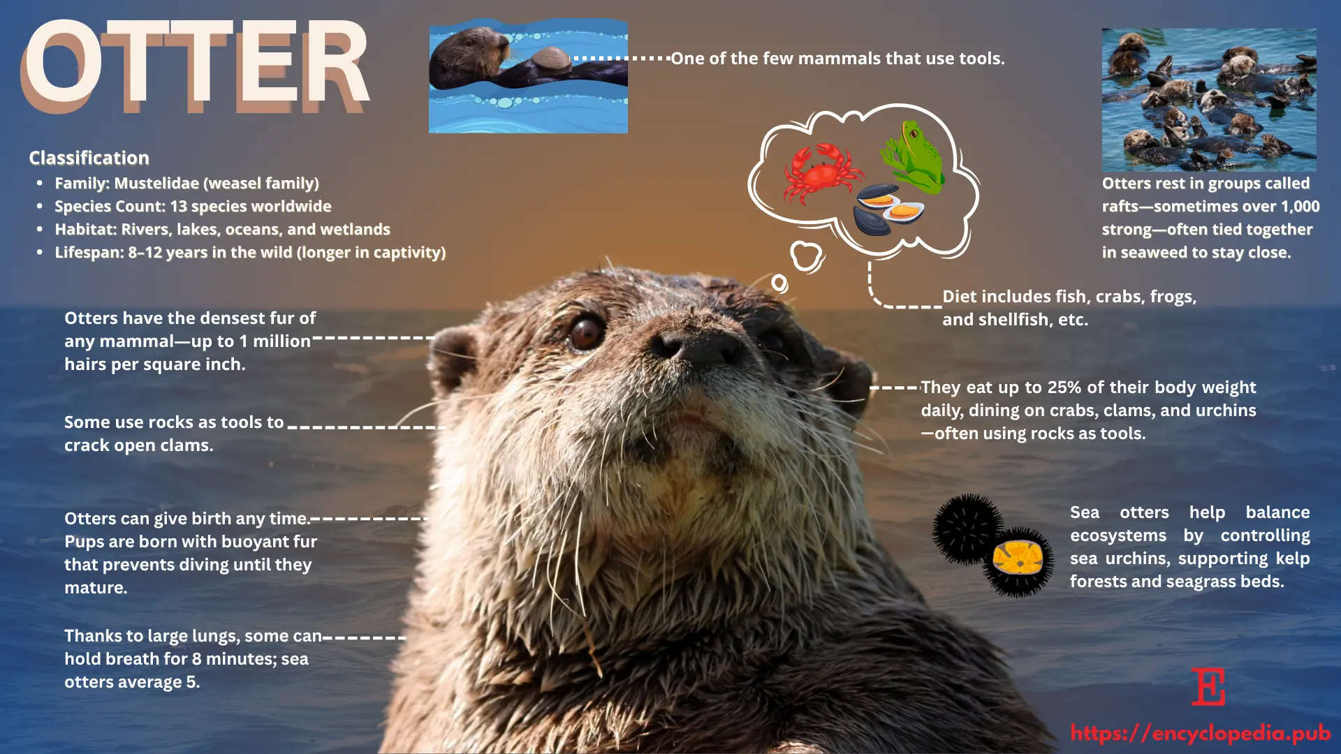Tool Use – Sea otters use rocks to break open shellfish, one of the few animals known to use tools.