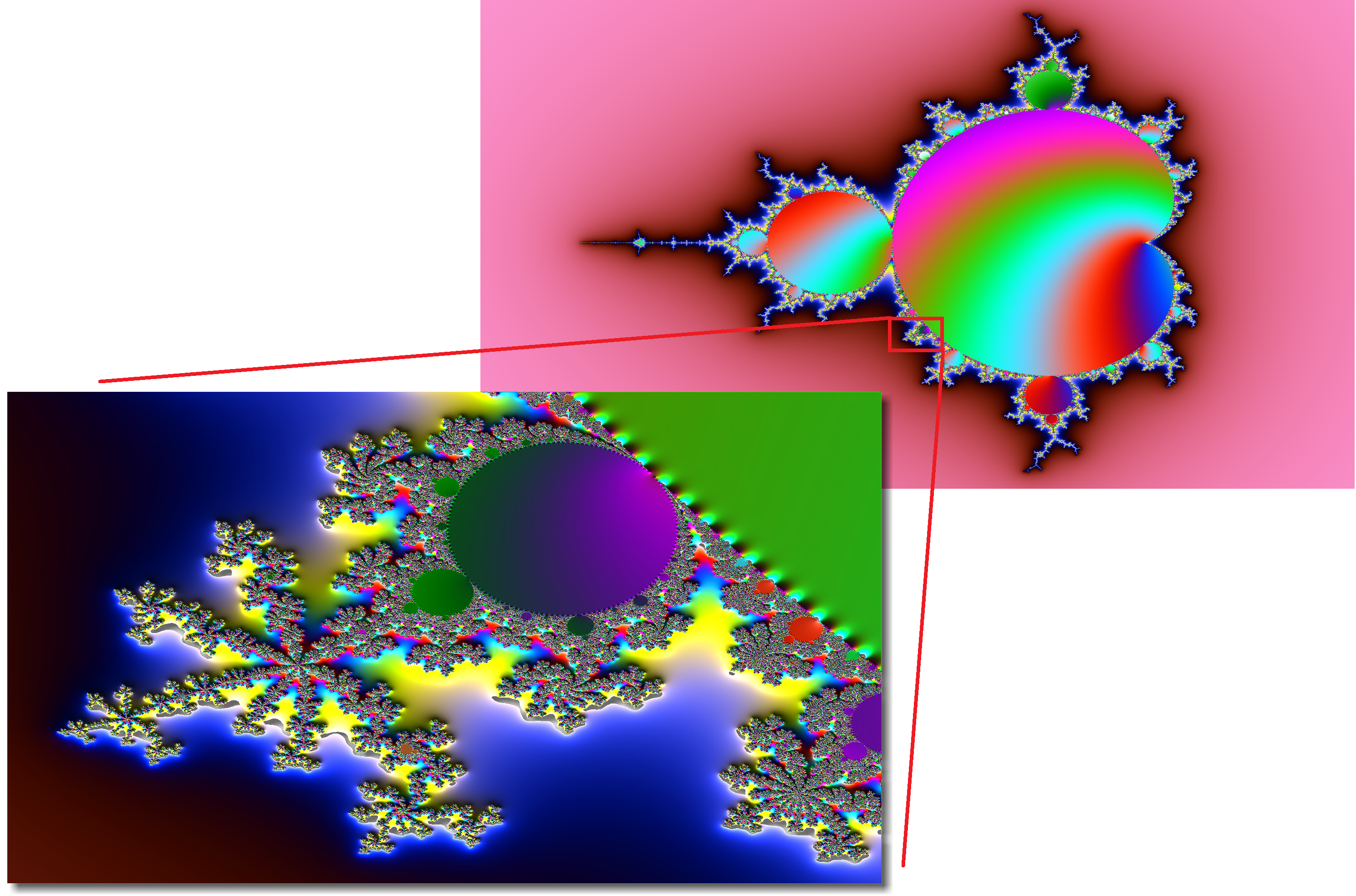 Figure 2. Visualization of the Mandelbrot set. Integer Escape-Time (up), Smooth Escape-Time (down).