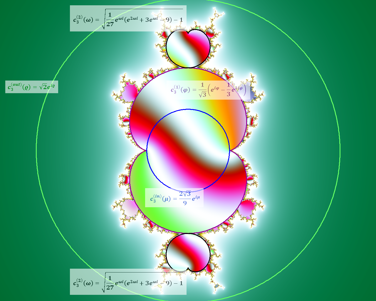 In [1], we can read about the Mandelbrot set of the second degree: „It should be pointed out that the bulbs’ apparent circular shape is indeed only approximate.“ We proved [2] that the curve of the second period in this set is precise circle. The curves of the higher period cannot be precise circles because the Mandelbrot set is generated by nonlinear transforms. However, it is possible to obtain their analytical description on principle.